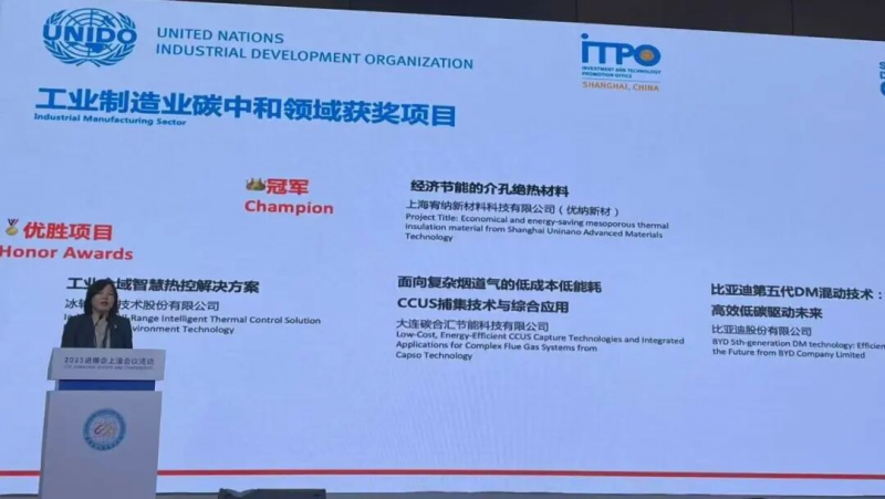 Le 29 septembre 2025, la 4e conférence de sollicitation et d’évaluation des solutions technologiques pour la neutralité carbone organisée par l’Organisation des Nations Unies pour le développement industriel (UNIDO) s’est terminée à Shanghai, et UniNano Matériaux Avancés a remporté le championnat de la compétition féroce dans le domaine de la neutralité carbone dans l’industrie industrielle de la fabrication grâce à sa « solution économique et économe en énergie pour matériaux isolants mésoporeux » ! Après plus d’un mois, le 6 novembre, lors d’un événement de soutien à la 8e conférence China International Import Expo Shanghai, le forum « Ouverture, Innovation, Avenir - Technologies de pointe et opportunités d’investissement transfrontalier » s’est tenu à Hongqiao. Luan Yucheng, président de UniNano Matériaux Avancés, a été invité à participer au dialogue autour de la table ronde sur « Coopération mondiale dans les industries vertes et durables » afin de partager la faible valeur carbone des matériaux mésoporeux et l’expérience d’atterrissage industriel avec des invités du monde entier, et réaliser une double percée : « championnat technologique + voix haut de gamme ». La réunion d’évaluation du 29 septembre avait pour thème « L’Initiative IDDI des Nations Unies permet aux entreprises de devenir vertes », réunissant plus de 50 représentants d’organisations internationales, de gouvernements, d’institutions de recherche scientifique et d’entreprises, ainsi que 12 roadshows technologiques sur la même scène. Après quatre heures d’examen rigoureux, la solution d’isolant mésoporeux d’UniNano Matériaux Avancés s’est distinguée face à de solides adversaires tels que la technologie hybride DM de cinquième génération de BYD et son système de contrôle thermique industriel mondial grâce à ses principaux avantages d'« économie économique d’énergie », et a remporté avec succès le championnat dans le domaine de la neutralité carbone dans l’industrie industrielle manufacturière.Le forum de soutien de la CIIE, le 6 novembre, a été coorganisé par le Bureau de promotion des investissements et de la technologie et le Département des partenariats institutionnels de l’Organisation des Nations Unies pour le développement industriel (UNIDO) et de l’Association internationale chinoise pour la promotion de la science et de la technologie (CIAPST), et accueilli par le Bureau de promotion des investissements et de la technologie de l’Organisation des Nations Unies pour le développement industriel (Shanghai, Chine) (UNIDO Shanghai ITPO) et le Comité de travail sur le développement durable du Conseil pour la promotion de la science et de la technologie. Axé sur le thème « Briser la situation et la symbiose et la croissance résiliente », ce forum a organisé des dialogues et échanges de haut niveau sur les axes clés de la mondialisation technologique, du développement durable ESG et de l’application de l’industrie de l’intelligence artificielle, et abordant des sujets tels que « Symbiose révolutionnaire des technologies de pointe et croissance résiliente de l’investissement transfrontalier ». Le forum a réuni plus de 100 invités issus du système des Nations Unies, d’agences nationales de promotion des sciences et technologies, d’entreprises chinoises et étrangères de premier plan, ainsi que d’alliances académiques et internationales de petites et moyennes entreprises. Shu Luomei, directeur du Bureau de promotion des investissements et de la technologie et du département des partenariats institutionnels de l’Organisation des Nations Unies pour le développement industriel, Duan Weiyi, président de l’Association chinoise pour la promotion des sciences et technologies internationales, Li Shuyin, directeur adjoint du Centre chinois pour les échanges économiques et technologiques internationaux du ministère du Commerce, et Barbara Trenzi, présidente de la Confédération mondiale des petites et moyennes entreprises (WUSME) et présidente de l’Association d’amitié San Marino-Chine, ont prononcé les discours d’ouverture.Lors de la table ronde sur « La coopération mondiale dans les industries vertes et durables » animée par Zhao Xiaolei, directrice de l'ITPO de l'UNIDO à Shanghai, M. Luan Yucheng, président-directeur général, en tant que représentant d'une entreprise phare technologique dans le domaine de la décarbonation industrielle, a partagé les pratiques innovantes d'UniNano Matériaux Avancés avec les invités du monde entier. Il a souligné les avantages uniques des réductions à « coût négatif » des matériaux mésoporeux – il a déclaré : « L’énergie thermique industrielle représente 20 % de la consommation énergétique mondiale, et la perte de chaleur à haute température reste l’une des émissions de carbone les moins efficaces et les plus élevées. Pour atteindre la neutralité carbone, la substitution énergétique à elle seule nécessite plus de 20 ans d’investissement d’environ 3 % du PIB pour y parvenir. Les technologies économiques et économes d’énergie sont la voie avec certitude et des résultats immédiats à ce stade.La technologie d’isolation mésoporeuse a actuellement le potentiel d’être diffusée à l’échelle mondiale car Una a résolu les trois principaux problèmes qui ont limité l’industrialisation des matériaux mésoporeux au cours des 30 dernières années : faible coût, préparation écologique et stabilité à grande échelle.UniNano Matériaux Avancés a innové dans le système d’agents gabarits et le mécanisme de synthèse, a réalisé la chaîne de production à base d’eau à pression atmosphérique, à la fois respectueuse de l’environnement et économique, et a fabriqué des matériaux isolants mésoporeux des laboratoires aux usines. Il y a plus d